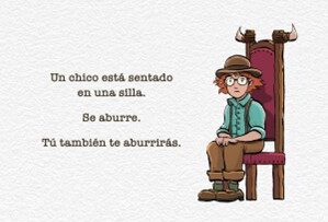 El narrador textual describe, con frases breves y un tono totalmente neutro, el día del protagonista, un niño pelirrojo que parece estar viviendo la situación más aburrida del planeta. Apenas sabemos nada de él, más allá de que está sentado en una silla y considera las matemáticas aburridas e inútiles.